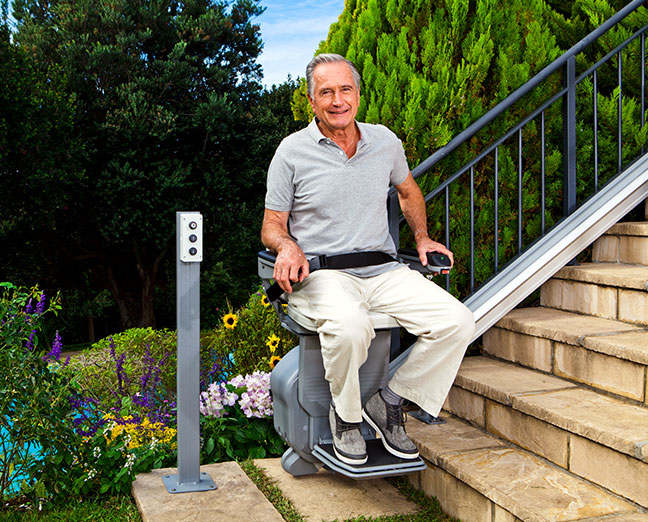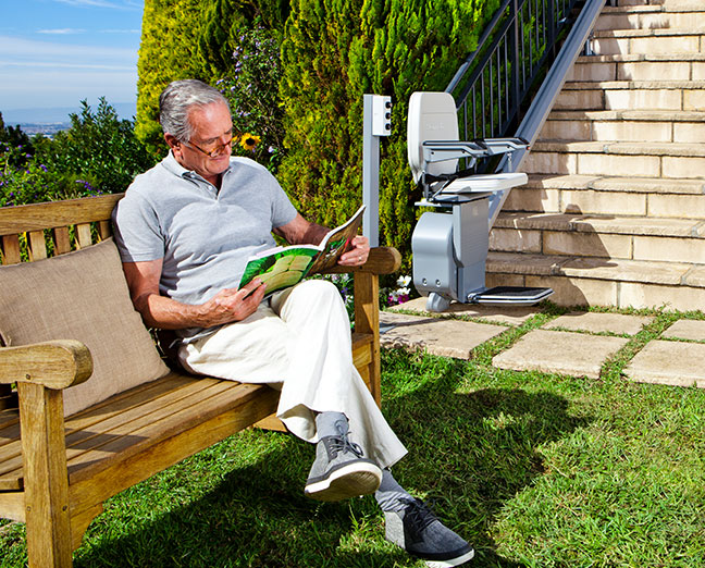 Have a look at the curved and straight models of Stannah stairlifts we offer for your outdoor stairs.